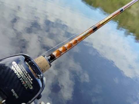管釣りプロっぽく竿を真っ直ぐに構えてアタリ取ったりして釣ってますね