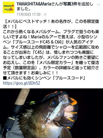 このルアーは殿堂入り故に使う事が出来なかったので、C45が復活すると聞いたら、1ユーザーとして「めっちゃ嬉しい」!!