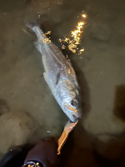 次はライン先行で多少波動を感じるリトリーブスピードで橋脚のツラに入った瞬間にヒット。ベイトの動き、パターン、鳥の位置などこの期間色々模索しついてきた結果は格別で