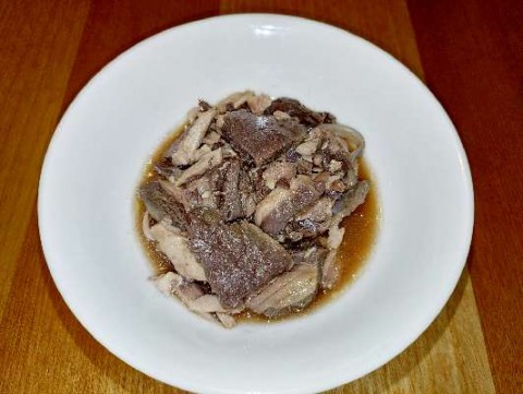 コシナガの血合はニンニク生姜醤油で煮込みました。