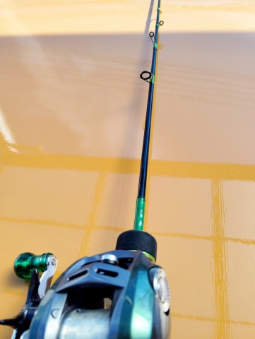 管釣りプロっぽく竿を真っ直ぐに構えてアタリ取ったりして釣ってますね