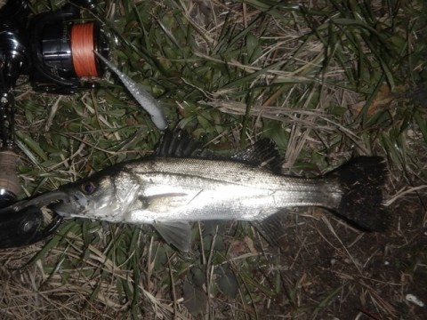 魚影が確認出来るまで、もっと小さいセイゴかと思いました。