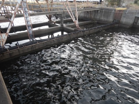 岸に近い場所に、上向きに排水されます。