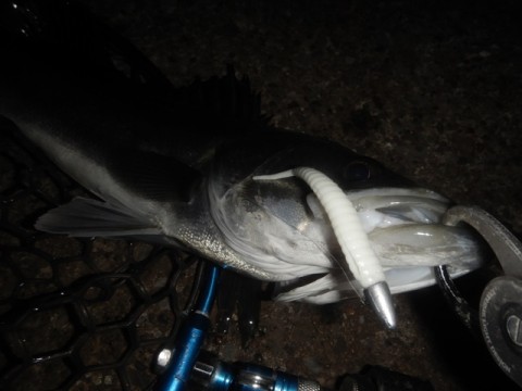 大きいワームで小さい魚は釣れませんが、小さいワームだとセイゴからランカーまで釣れちゃいます。