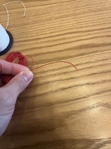 ご覧の通りもともと白の繊維ですが、しっかり赤色にコーティングされています。