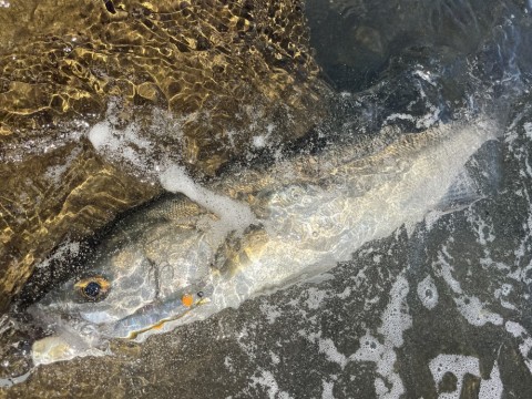 これは、流れが緩くなって魚からの反応が無くなった時に、明暗の境目を並行に巻いてくるメソッドです!