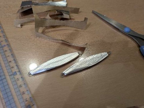 竹串で一本一本線を引いているのですが頭周辺はそのままツルツルに腹〜背に向けてクロスハッチ、腹は斜め線のみというようによりリアルベイトに近いフラッシング出るように設計しています。
