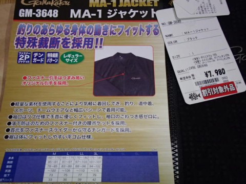 昨年末の大阪出張時に訪れた釣具屋で偶然見つけたがまかつのMA-1ジャケット GM-3648。2021年に初めて購入し、2024年にリピート買いしたウェアが半額特価だったので3着目を購入。