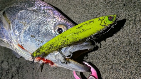 と言えるようなモノがあるほどやり込んでいるわけではないので、潮の変わり目の時合いを待ちながら各バイブを投げて巻き続けるだけ(笑)