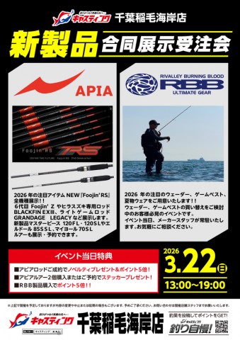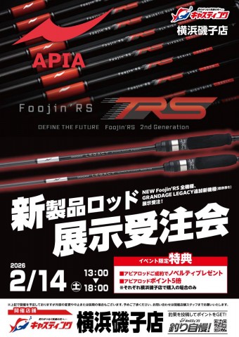 ここでも注目が集まるNEW『Foojin'RS』の横で、申し訳なそうにチョコンと並んでいる新製品ロッドも。