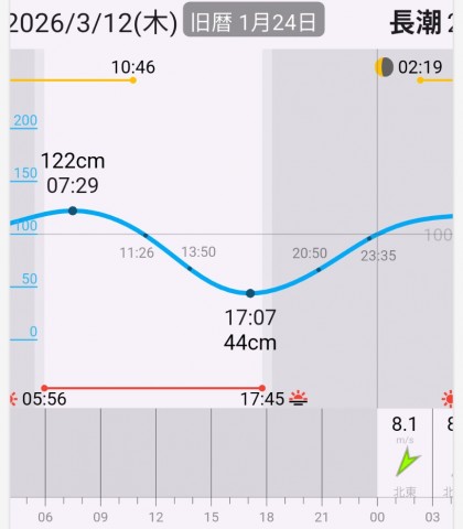良さそうな潮位の時間は遅くはなるものの。