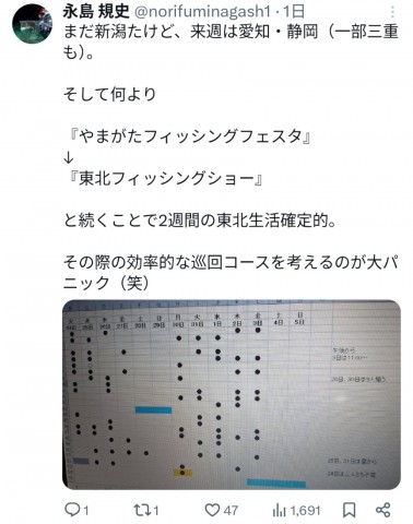 この間は当然として『やまがたフィッシングフェスタ』に向け数日前より入るので、1週間以上の東北生活に。