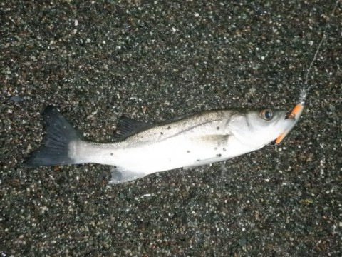 思いがけずナイスサイズが釣れてしまったので、まだ魚はいるのではないかと、このポイントではかなり粘りましたが、ダツの猛攻に会い、何度もルアーを持って行かれそうになって、いい加減嫌気がさしてきました。そこでちょっと名残惜しさを残しつつサーフまで移動してみることに。