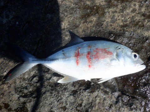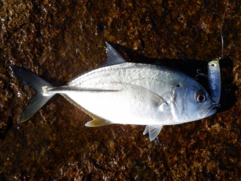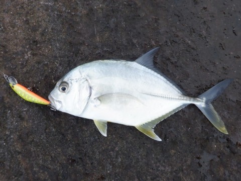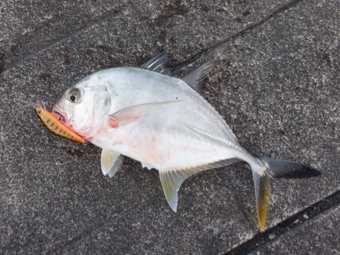 おおっ!メッキもいましたぞ!20㎝足らずのギンガメッキでしたが、本命が釣れてくれるとやっぱりうれしい^^