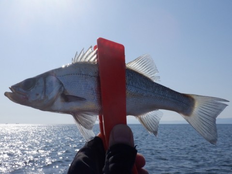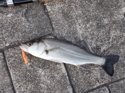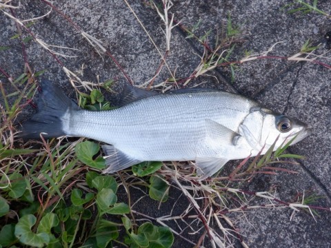 ヒラセイゴでした。30㎝くらい。その後全くバイトが出なくなったので移動。いつの間にか810さんと極楽とんぼさんが、S氏が釣ったというポイントに入っていました。810さんは到着早々5尾くらいゲットしたとの事。またポイントを間違えたorz