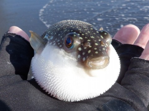 この魚は抱卵しているのでしょう。真ん丸な魚体でした。
