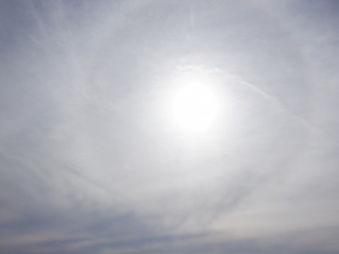 だんだん雲が濃くなってきて、太陽の周りに不思議な円が出来ました。何だか奇麗だな~なんて気を抜いていたら、またしても波打ち際でガツン!さっきと同じような引きですが、もっと力強い!