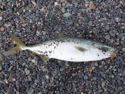 何とイナダでした!ヒットルアーはJackson/Trout Tune HW。遠投が決まったとはいえ軽量ルアーです、大した飛距離が出ていませんでしたが、よくぞ食ってくれました。