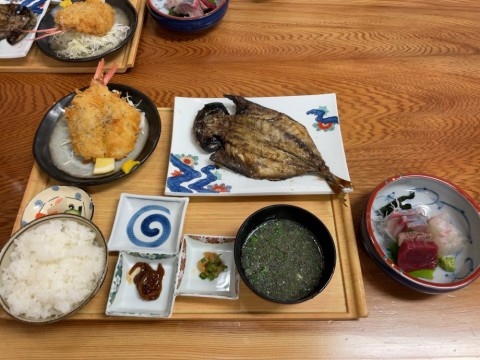 ぱっと見は大資本でも入っていそうな店の作りですが、実際には家族経営的なアットホームな店でした。金目鯛のフライは初めて食べたけど、身がフワフワで衣がサクッと揚がり、かなり美味しい。あじの干物は薄口で肉厚。ちょうど良い焼き具合。刺身まで付いていて、おかずの量がかなり多いです。ご飯が足りなくなります。