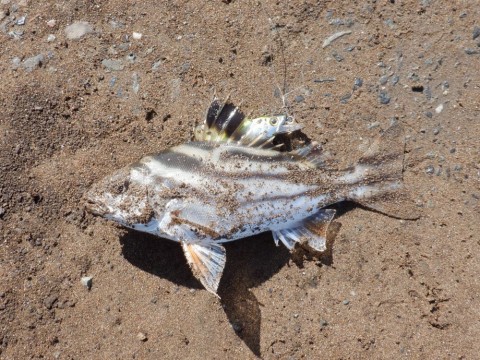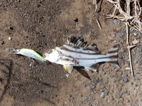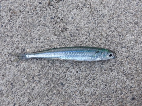 ベイトはこのトウゴロウイワシでした。7,8㎝の大きさ。試行錯誤するも、結局シーバスに食わせることが出来ず…。