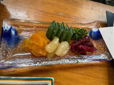 各メニューとも、酔っ払って正確な名前を失念しました^^; 実はこれら以外にも「明日葉の天ぷら」「揚げ銀杏」「小鯖の干物」などいただいたのですが、酔っ払っている上にがっついて食うものだから、写真撮り忘れました^^;