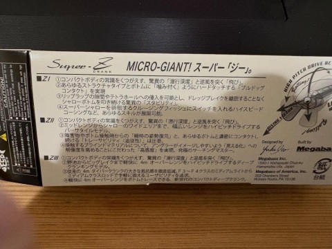 それにしても、メガバスのパッケージは相変わらずですね。「ブルドックコンタクト」「ドレッジブレイク」「ハイピッチドライブ」・・・などなど、意味が今一つ掴めない、そして口にするのも恥ずかしい単語が唐突に並んでいます。もうこれはメガバス社が、自虐ネタにしているのかもしれません。そういう意味では好感の持てる部分がありますね。]]>