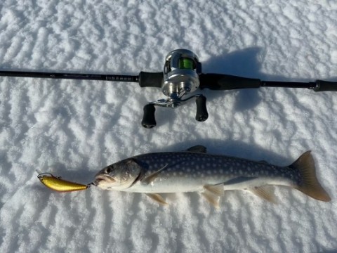 ラインセッティングとしてはPEは2号まで、リーダーは4号から6号を使い分けて、ルアーはもうビックベイト縛りでイトウを狙います。