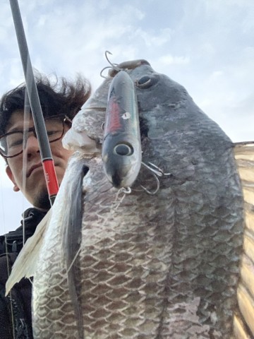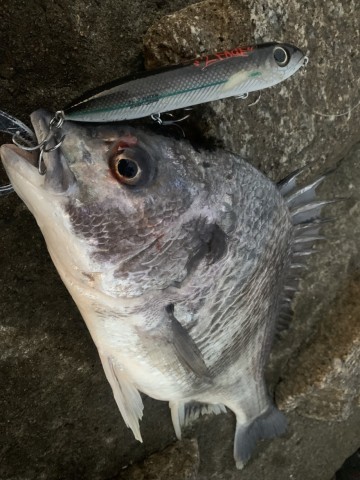 ギュンギュン突っ込むチヌにヒヤヒヤしながらキャッチ。