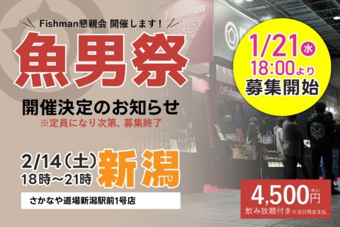 今年は一部会場にてFishman懇親会 魚男祭の開催が決定!