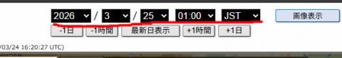 衛星なのでリアルタイムではありませんから、2時間くらい前までのデータを見てやる必要があります。