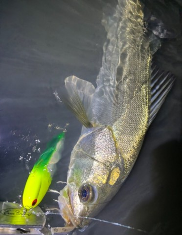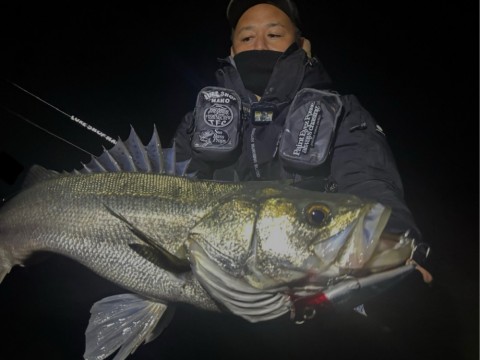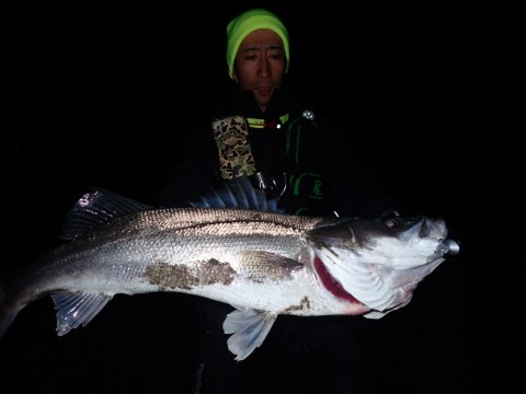 MIRACLEWORKS使い手のMO3。84cmのランカーシーバス。ヒットルアーはドカポップ。