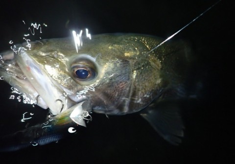 上がってきたシーバスはいきなりランカーシーバス。見事な1匹からラッシュが始まる。