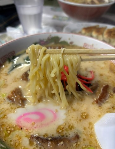 角煮豚骨ラーメンが冷え切った体に染みるのなんの。口の中でほろほろに溶ける角煮が麺と絡んで絶妙だ。餃子はニンニクが効いててパンチ力満点。浜松市民を唸らせた餃子は是非とも食べてもらいたい一品である。