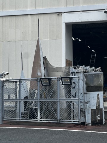 よーく見るとスターファイターの輪切りと先っちょが駐車場の脇に放置プレイになっている。
