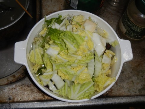 具材を殆ど食べ尽くしたのでポン酢醬油を土鍋に返し、米飯と溶き卵を投入、一煮立ちして消火し雑炊の出来上がり。