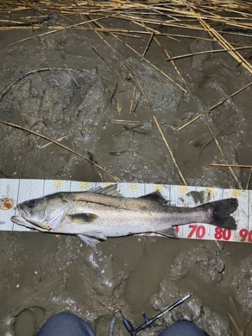 シャローに差してきて普通にベイト食っているシーバスがいないかなぁと淡い期待を抱いて適当に巻いていた時のヒット。