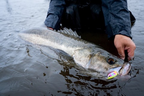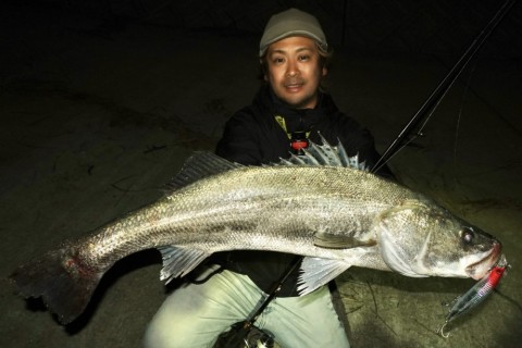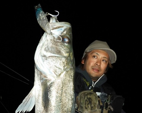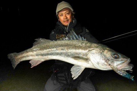 無事ランディングしたのは85cmのシーバス。