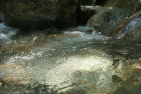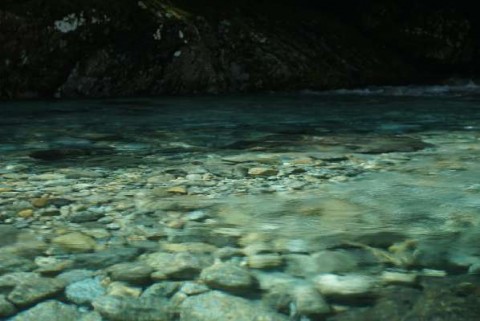 昼近くになると沢の濁りはほとんど無くなり、いつもの美しい流れに戻っていました。
