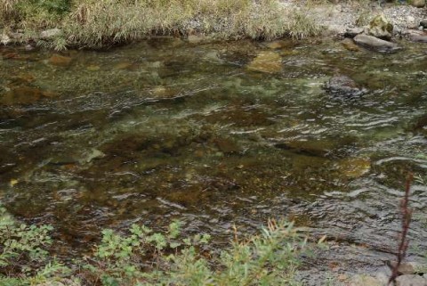 川の真ん中にメスと思わしきサクラマスが泳いでいました。