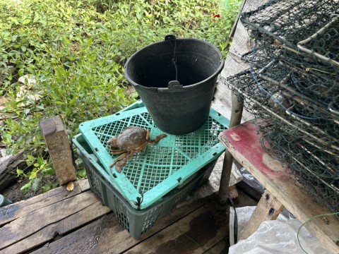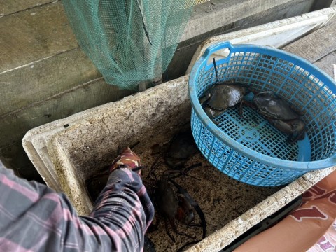 狙い通り養殖場の周辺はノコギリガザミの好漁場。カニを持っている漁師もすぐに見つかり交渉開始。