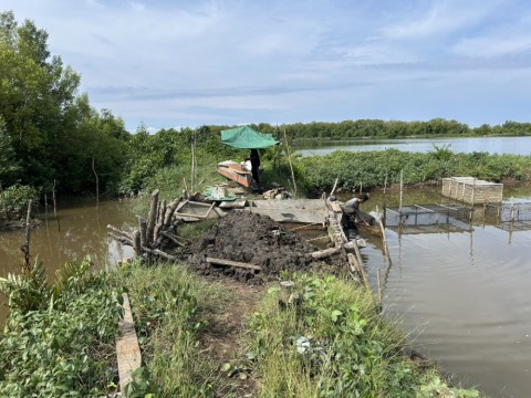 バイクに乗って1時間、渡船を2回も使ってやってきた過去一遠い養殖池。