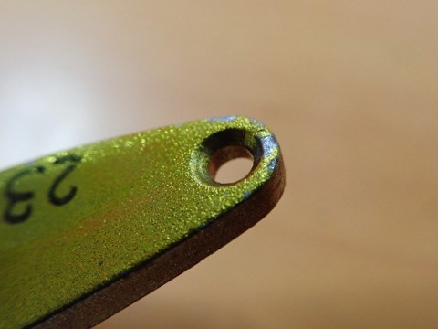 なので、【Fallo(ファロン)】このアイ部分の角を面取りし、すり鉢状のテーパーをつける事で実に滑らかにアクションするようになりました。