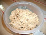 ①アジの干物2枚を焼いて身をほぐす。②すり鉢で白ゴマ大さじ3と味噌大さじ2をすりこぎ棒ですり潰しながら混ぜ合わせる。③ほぐしたアジの身を入れて混ぜ合わせる。