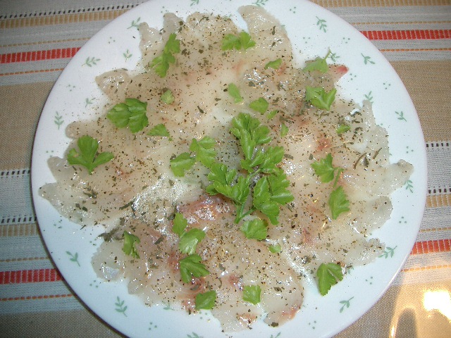 今夜は家内と息子のためにカルパッチョを作りました。青味は鉢植えの自家栽培イタリアンパセリです。でも、おいらは一人勝手に刺身で食しました。ちなみに、鳥取県産の「さしみ醤油」(イナサ醤油 山崎醸造本舗)を使います。とろっとしていて甘いたまり醤油みたいなものです。