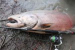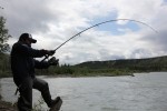 アラスカ遠征、ブラックライン97Mで15kgほどのキングサーモンをキャッチ。
