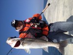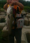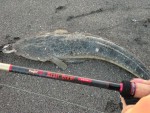 荒瀬の中の釣りのため、魚を走らせることができず、ドラグは最初から10kgほどに設定。ヒットした後は、それでも50mほどラインを引きずり出していきましたが、その後は徐々にロッドのパワーが勝り、バッチリランディング。