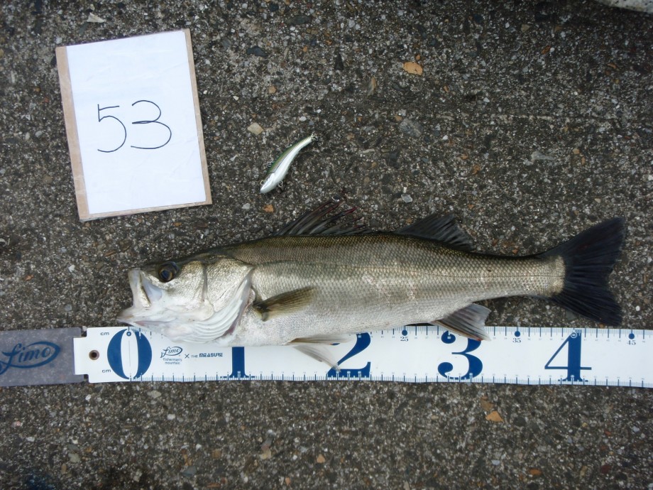 というのも、さきほど最小賞を狙えるサイズのチーバスが釣れたのでとりあえず