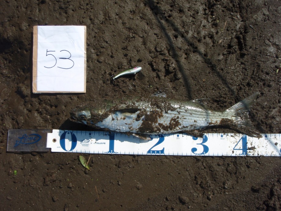 二本目:ボラ:44cm ルアー:サンダーブレード