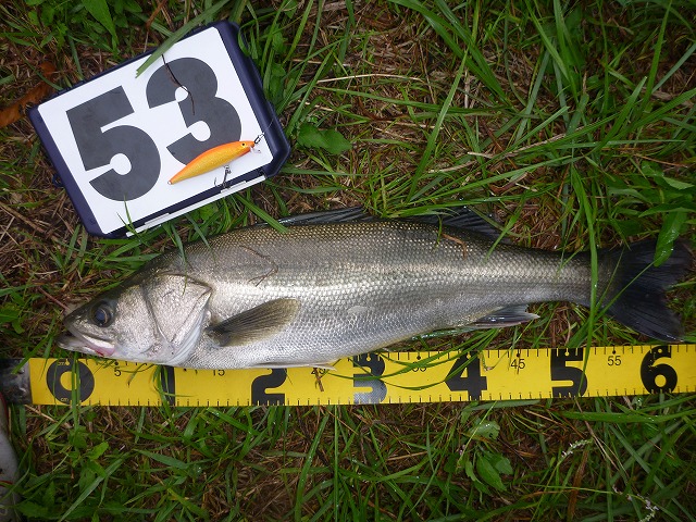 一本目:シーバス:44cm ルアー:サンダーブレード