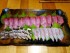 (マグ) - 先日の釣果の刺盛。ヨコワ(クロマグロ若魚)より身が淡く柔らかいコシナガマグロですが、美味い。もちろん、ネリゴ(ショゴ、シオ、ネイゴ、カンパチ若魚)とイサキも絶品。コシナガの血合はニンニク生姜醤油で煮込み…